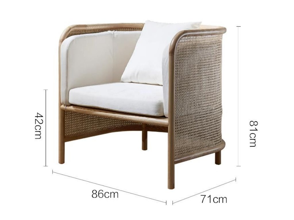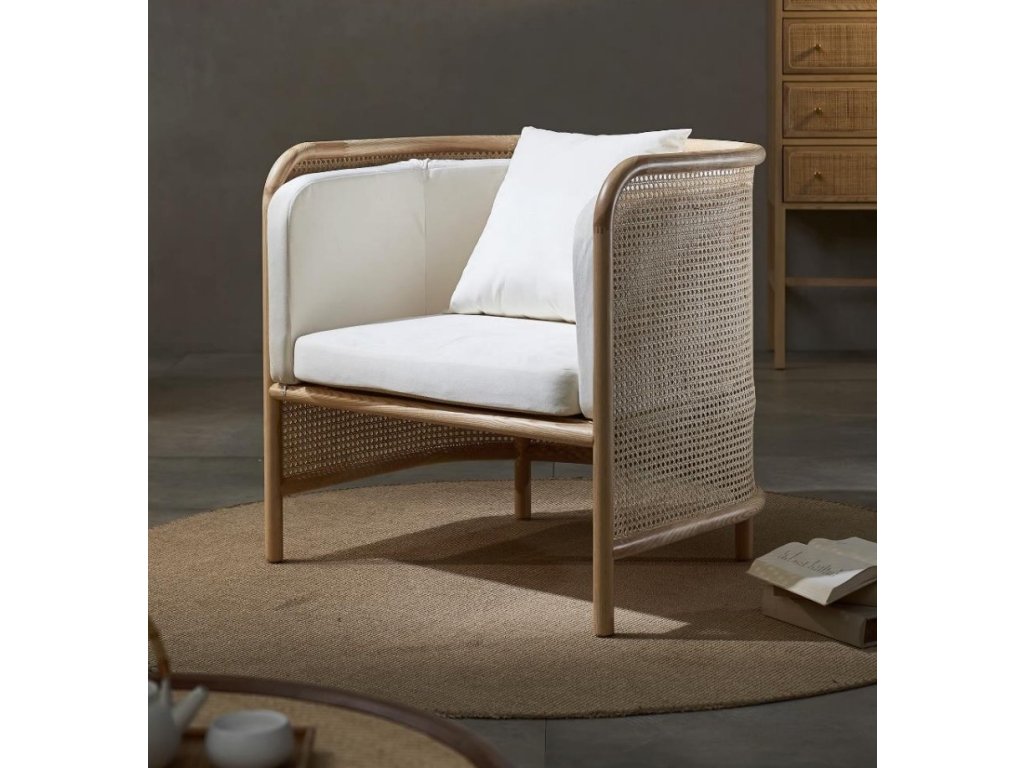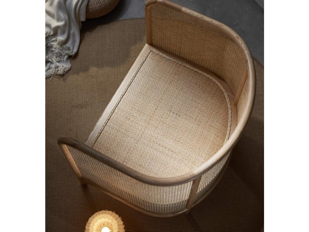 Elegantní křesílko z masivního bukového dřeva s kvalitním čalouněním sedáku a opěradla, které lze potáhnout látkou dle vaší představy. Celou konstrukci obepíná přírodní ratanový výplet, jenž dodává nábytku jedinečný charakter a promění každý interiér v originální prostor.