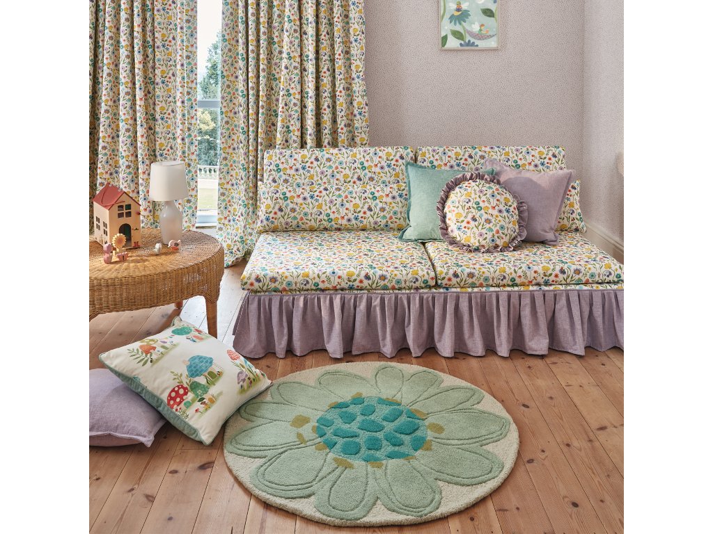 Koberec Pretty Petals, oba kruhového tvaru, se krásně hodí k koberci Oops-A-Daisy a vytváří okouzlující dvojitý květinový vzhled podlahy.