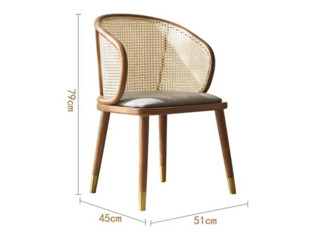 Celý rám je opletený elegantním ratanem, který židli propůjčuje jedinečný charakter a přirozenou noblesu. Tento kousek je ideální pro milovníky autentických materiálů, precizního řemesla a originálního designu, který zaujme na první pohled a stane se výraznou ozdobou každého prostoru.