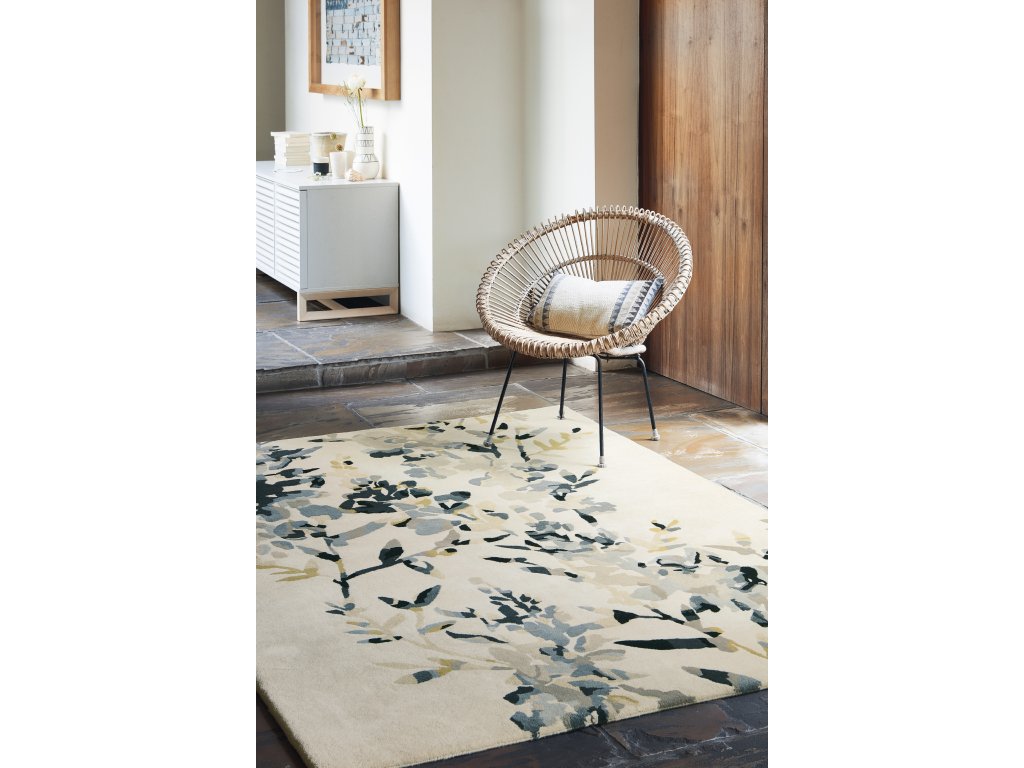 Přepychový, ručně všívaný koberec z čisté vlny se vzorem visuté vistárie a rozkvetlých květin pro zvýraznění. Koberec Hana mísí jemné a bohaté tóny a vytváří poutavý ústřední bod místnosti.