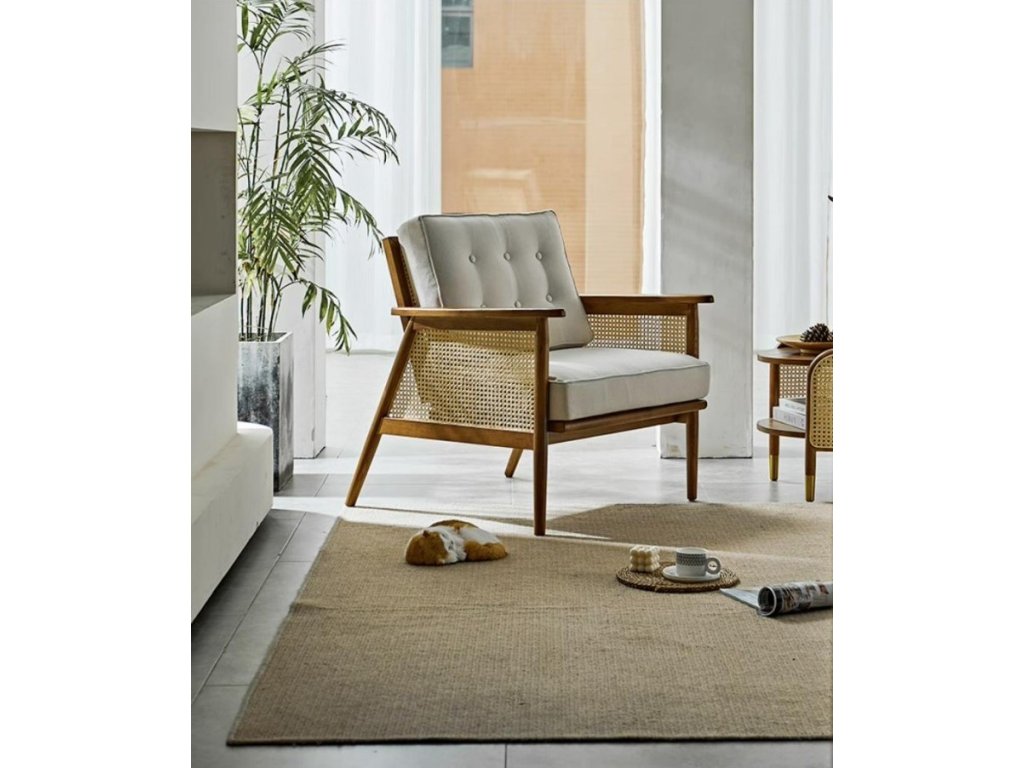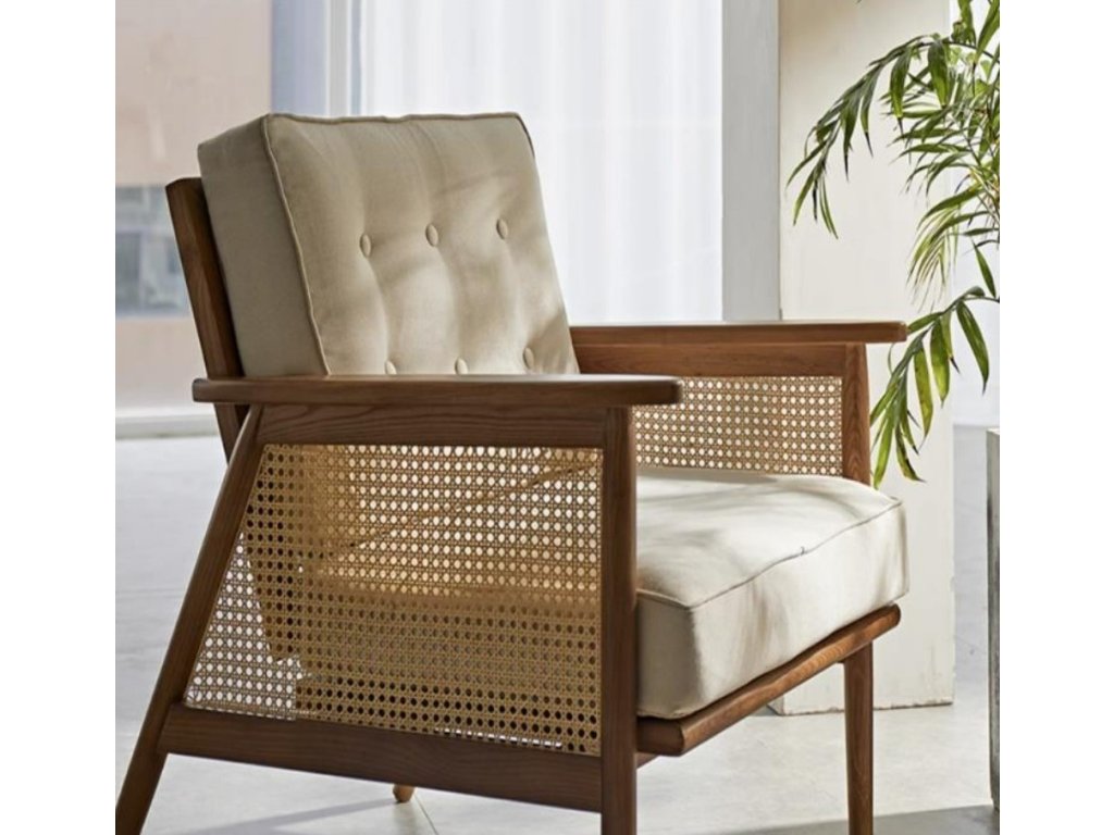 Stylové křeslo s masivní bukovou konstrukcí, ratanovým výpletem a měkkým polstrováním v neutrální barvě, které zajišťuje nejen pohodlí při sezení, ale je i skvělým doplňkem do vašeho interiéru. Čalounění sedáku a opěradla lze potáhnout dle vašich představ. Nabídku vám rádi připravíme.